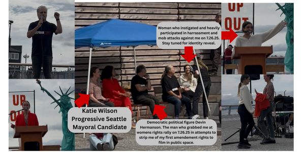 Mayoral Candidate Katie Wilson in the presence of multiple people who assaulted me at the women's rights rally on 7.26.25. This included Zoe Mason and Dem Political Figure and failed politician Devin Hermanson whom is a leader within Seattle Indivisible and Defund Musk -- 2 of the groups who hosted and promoted both events. Why would a Seattle Mayoral Candidate be campaigning with such people? I approached Katie at this event and showed her videos of my assaulters to make sure she knows who she is surrounding herself with.