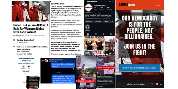 Seattle Indivisible and Defund Musk hosted both the event I was assaulted at on 7.26.25 and the 9.7.25 event with key speaker Mayoral Candidate Katie Wilson. I reached out to Seattle Indivisible shortly after the assaults against me took place. They viewed my messages, but didn't respond-- not surprised about no response, but my intention was to document that they were aware of violence against me at the event they hosted. (For civil rights and legal purposes, as well as, public interest in the case.)